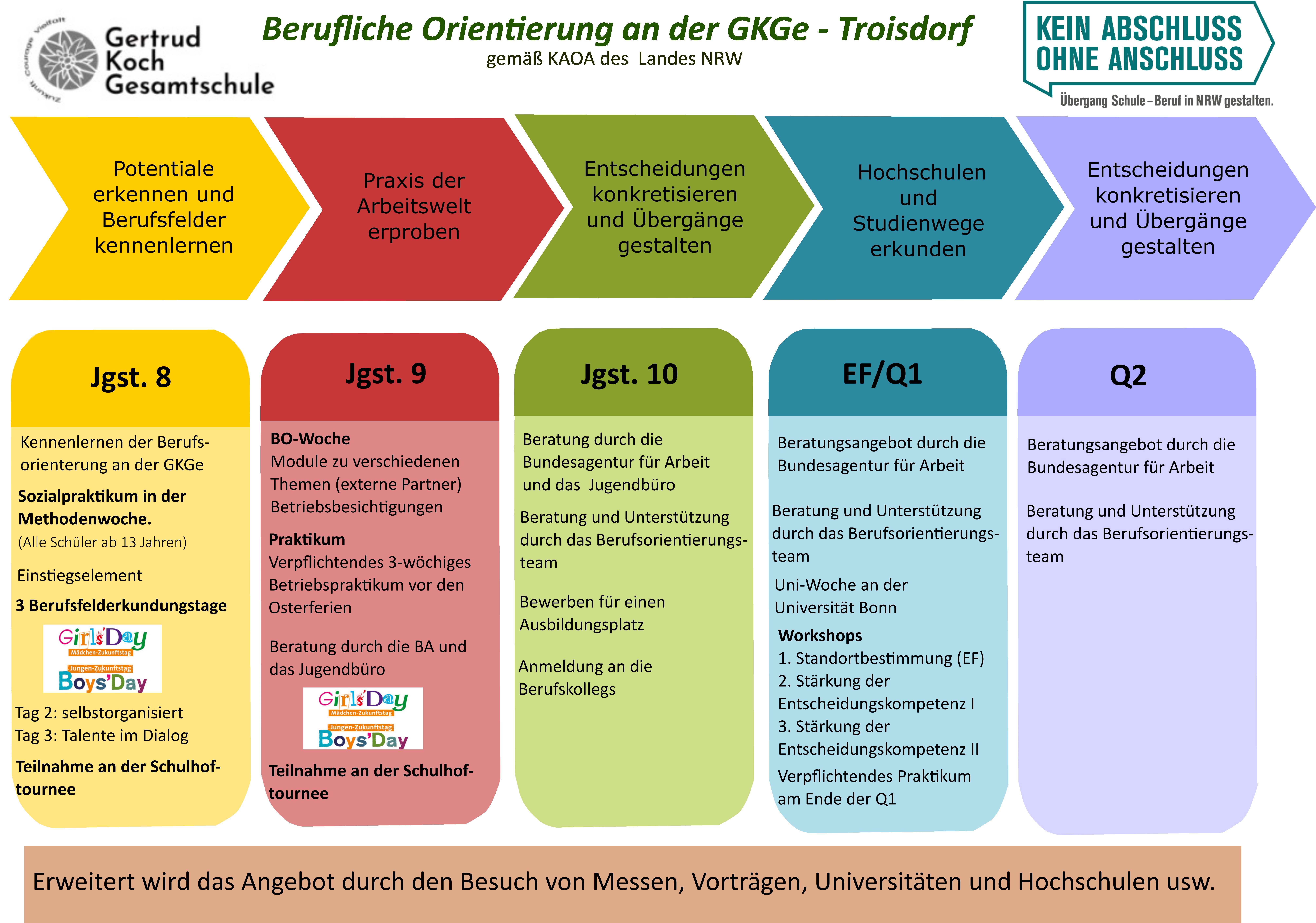 Bitte alle Termine vorab mit dem Berufsorientierungsbüro absprechen (Kontaktformular) und den Berufswahlpass zum Beratungstermin mitbringen. Die Terminvergabe erfolgt an deine schulische E-Mail-Adresse.
